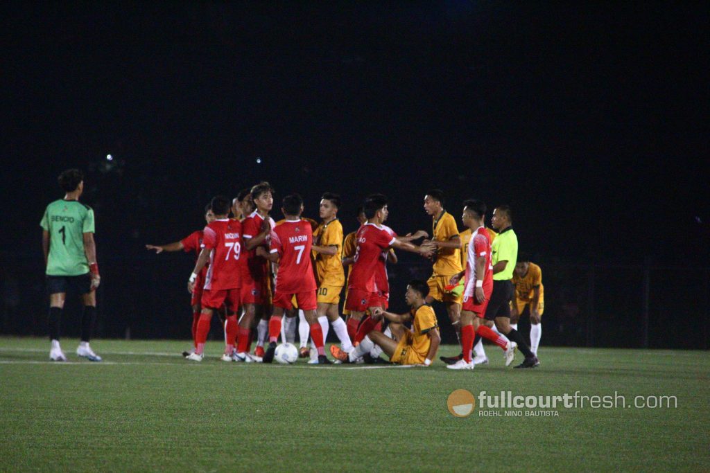 Legs betrayed the Red Warriors though as a rejuvenated Tamaraw charge held majority of possessions in the second half, as forward Geri Martini Rey goaled off a long ball from Basindanan issued from the top right flank to tie the game.