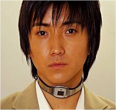 The bomb necklace around his neck blew up, that’s why he now wears a bandage as he seeks to control Japan with a deadly notebook and pen.
