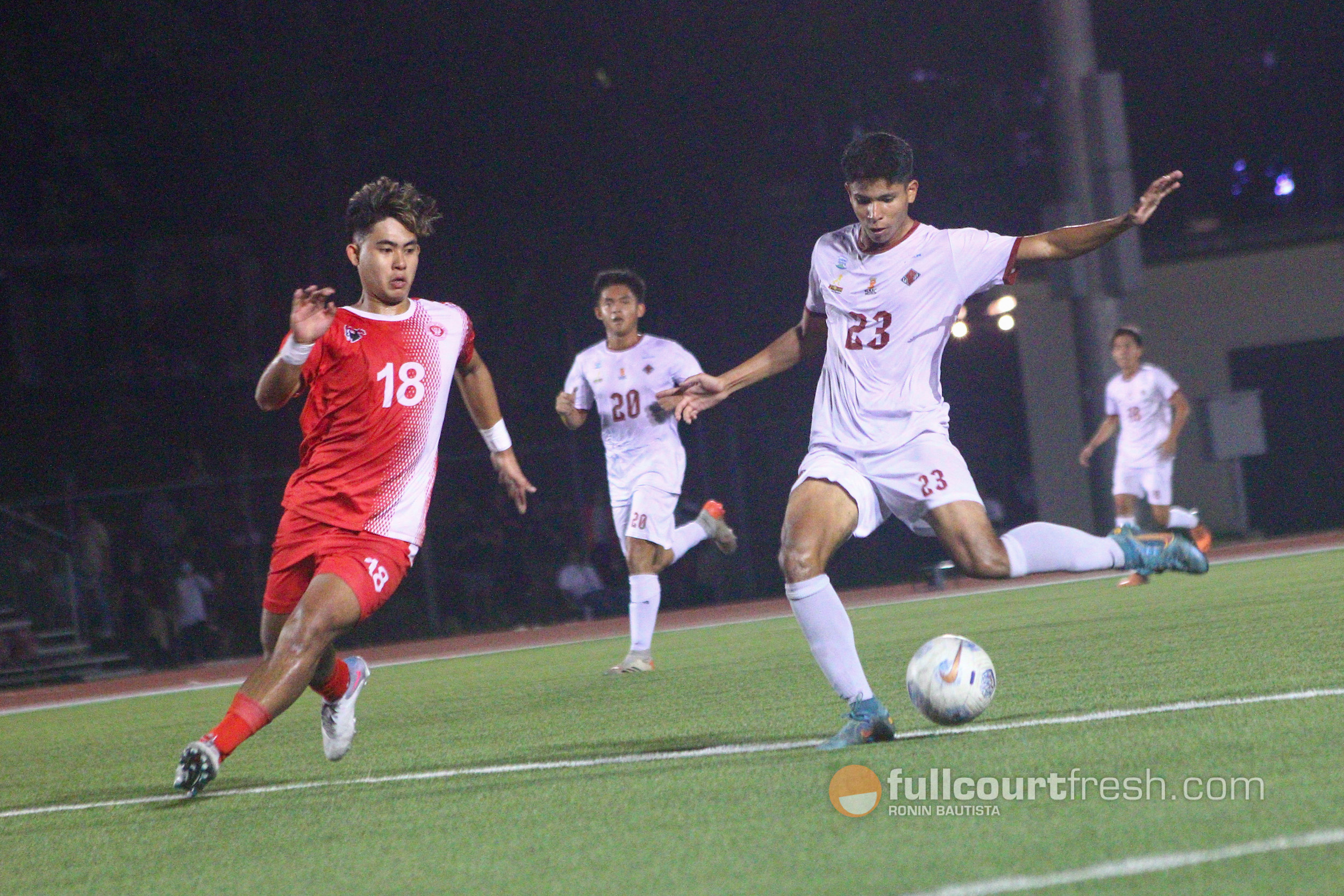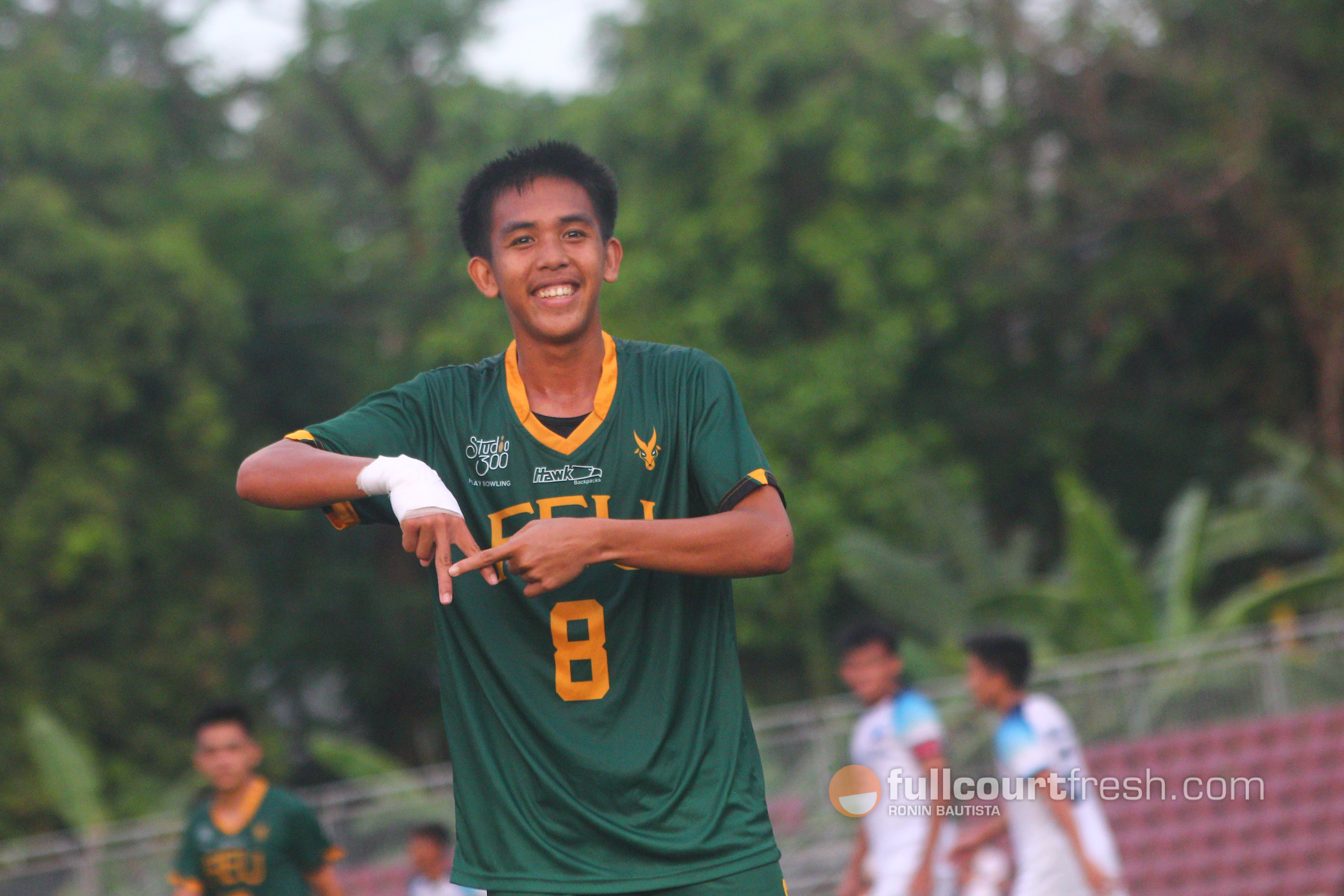 The attacking midfielder goaled in the 17th minute for FEU’s second goal and added a late one in the 87th minute off a dazzling assist by Stephen Soria for a 5-1 lead.