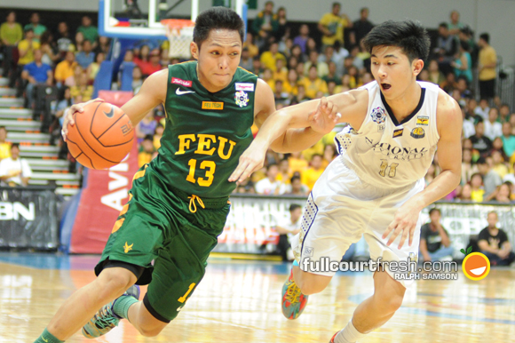 FEU then played a running game, scoring 11 straight points off dribble drives from leading scorer Mike Tolomia and putbacks from Raymar Jose.