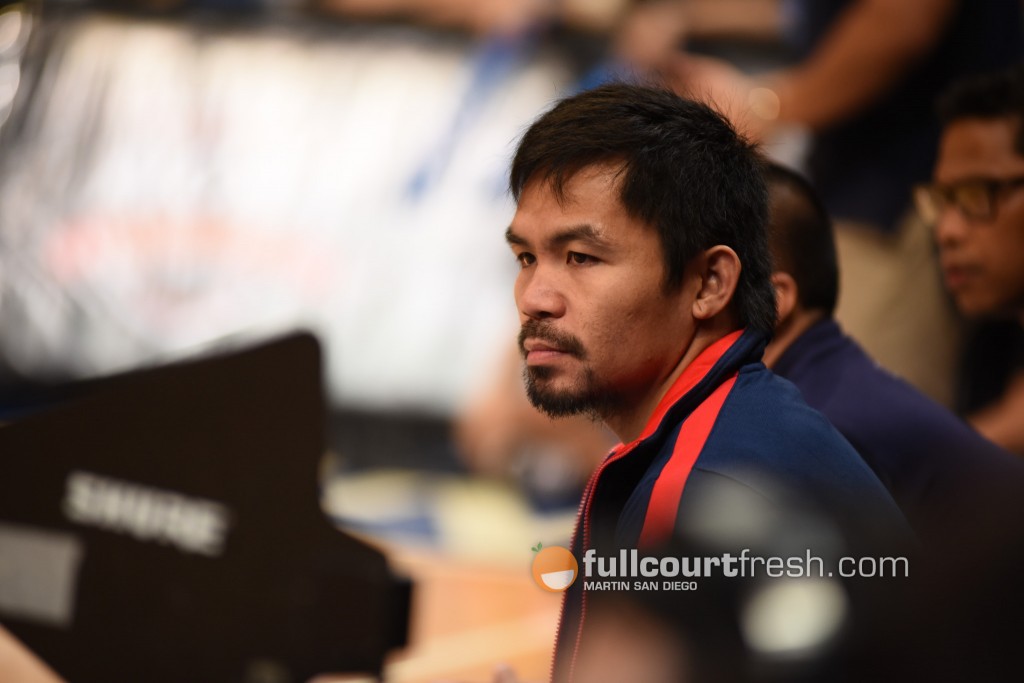 Minutes before Game Three of the NCAA Season 91 senior’s basketball finals between Letran and San Beda, the game announcer made everyone in the Mall of Asia Arena know that Manny Pacquiao is in the venue to watch.